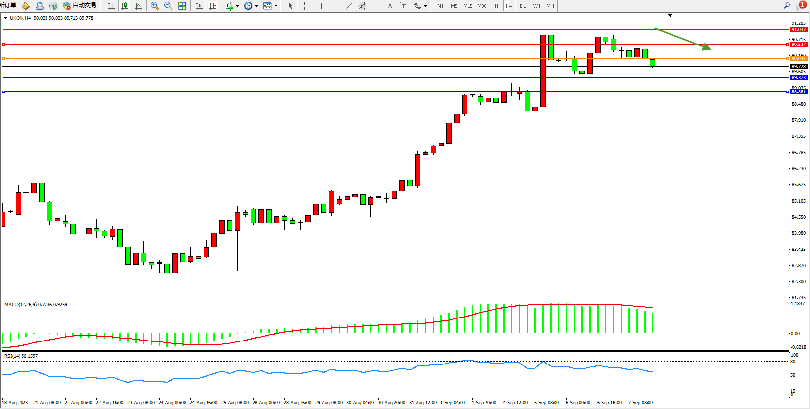 布油UKOil——4小时K线图显示: