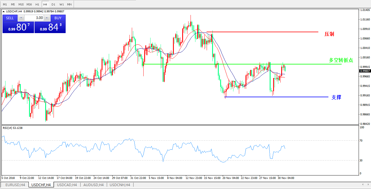 技术面简析: RSI拐头下行,拖累汇价走低。