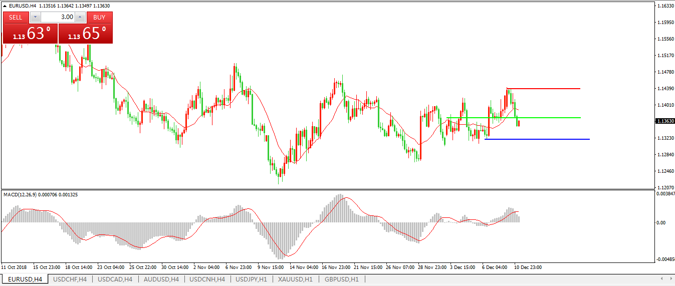 基本面简析:12月欧元区投资者信心连续第四个月下跌,并跌至四年低点,主要由于对贸易摩擦、意大利与欧盟的预算争端和英国脱欧的担忧。
