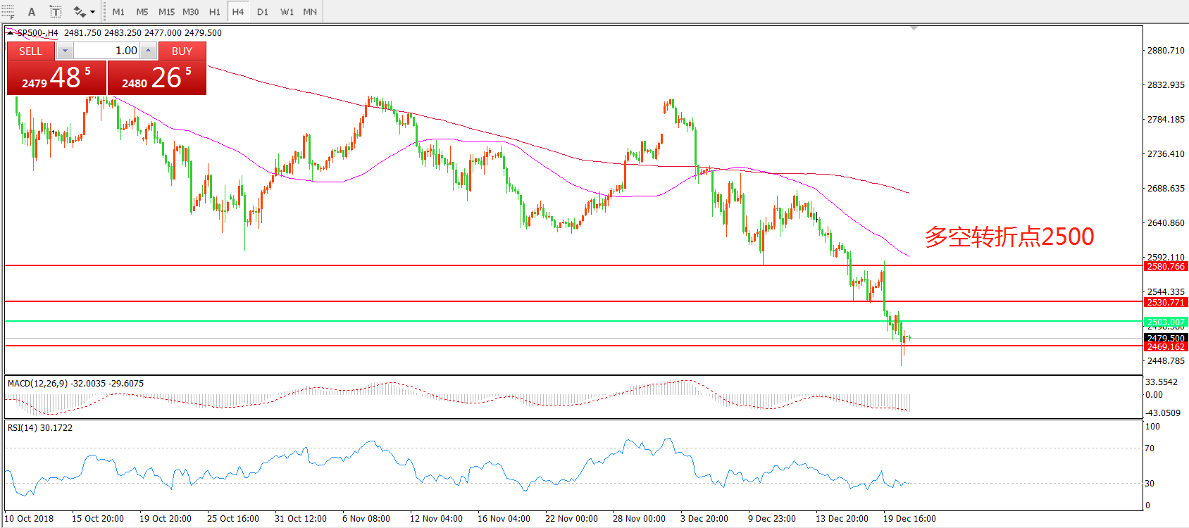 标普500SP500 4小时图