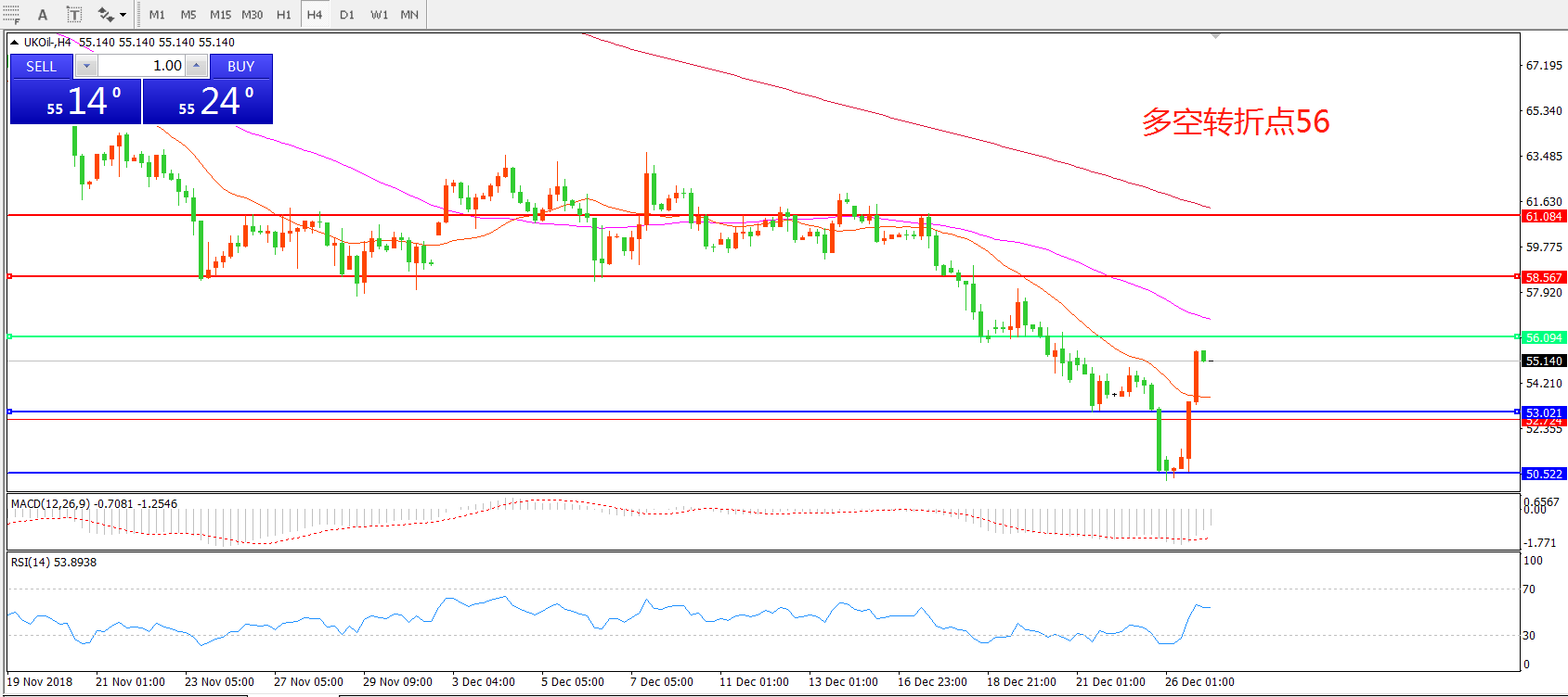 12月26日本周三,布伦特原油期货一度涨至55美元上方,日内涨幅超过8.6%,最终收报54.47美元/桶,收涨7.93%.美股暴力反弹令原油等风险资产全线走高,同时假期市场中成交量低迷导致油价存在上涨的空间。但在基本面没有重大变化的情况下,油价此次的拉升更像是空头的获利兑现,后续走势仍需结合市场情绪谨慎操作。