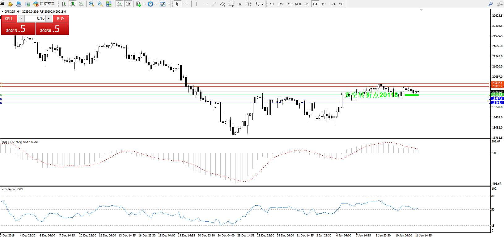 日经指数JPN225——4小时K线图: