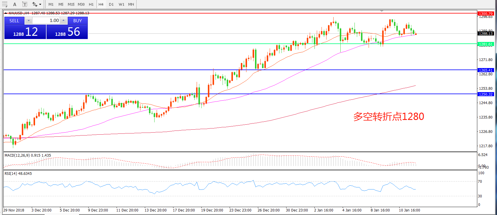 交易策略:在1280.00之上看涨,目标1300.00 1319.00