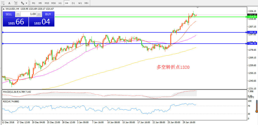 交易策略:在1320.00之上看涨,目标1330.00  1345.00