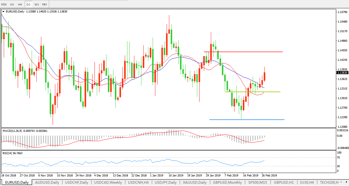 交易策略:在1.1315之上,看涨,目标价位为 1.1405 ,然后为1 .1450