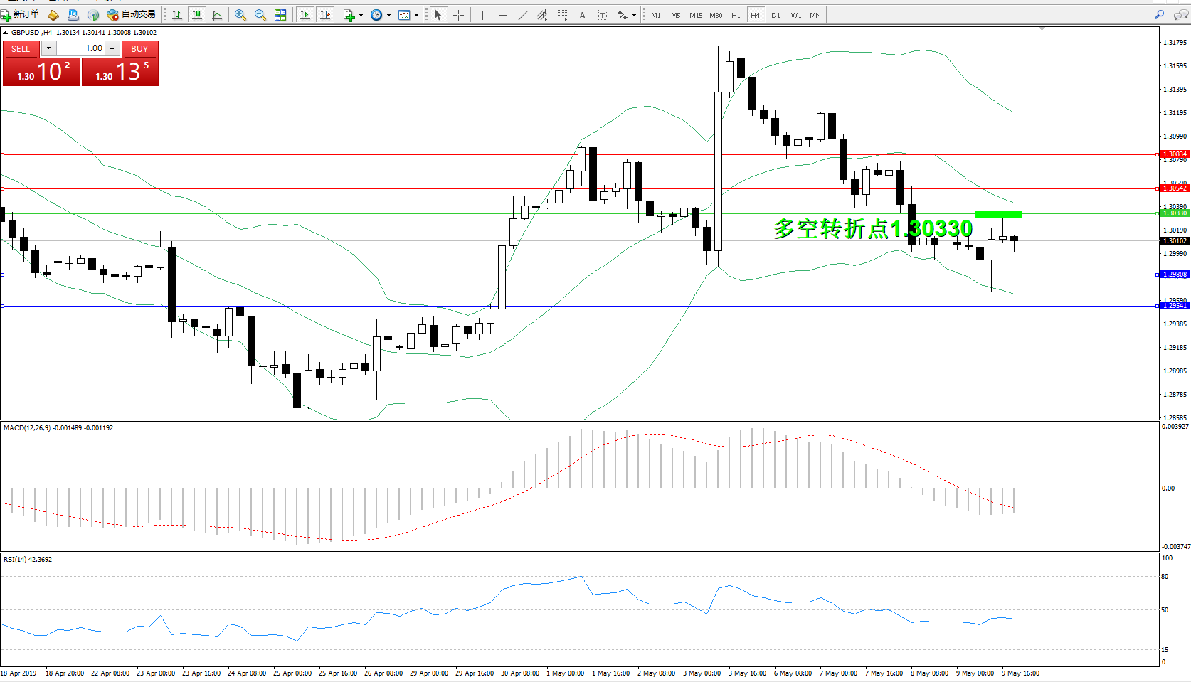 交易策略:1.30330下方看跌,目标1.29808、1.29541