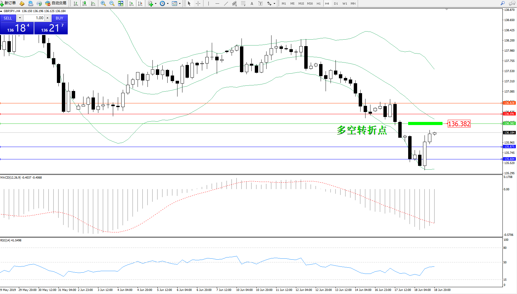 交易策略:136.382下方看跌,目标135.875135.604