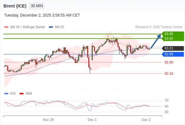 在 62.95 之上,看涨,目标价位为 63.65 ,然后为 63.85 。
