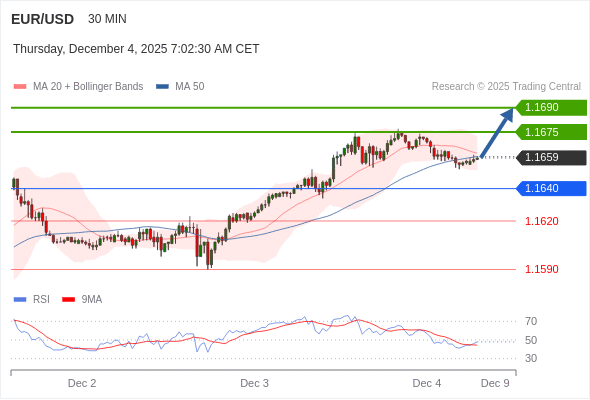 在 1.1640 之上,看涨,目标价位为 1.1675 ,然后为 1.1690 。