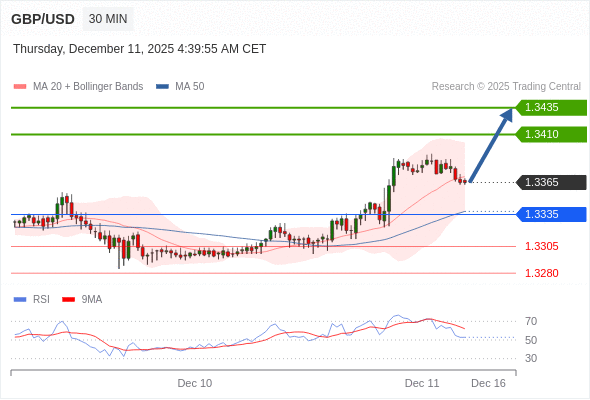 在 1.3335 之上,看涨,目标价位为 1.3410 ,然后为 1.3435 。