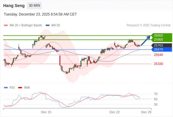 恒生指数 当日内: 超短线(当日内)支撑位在25670附近。