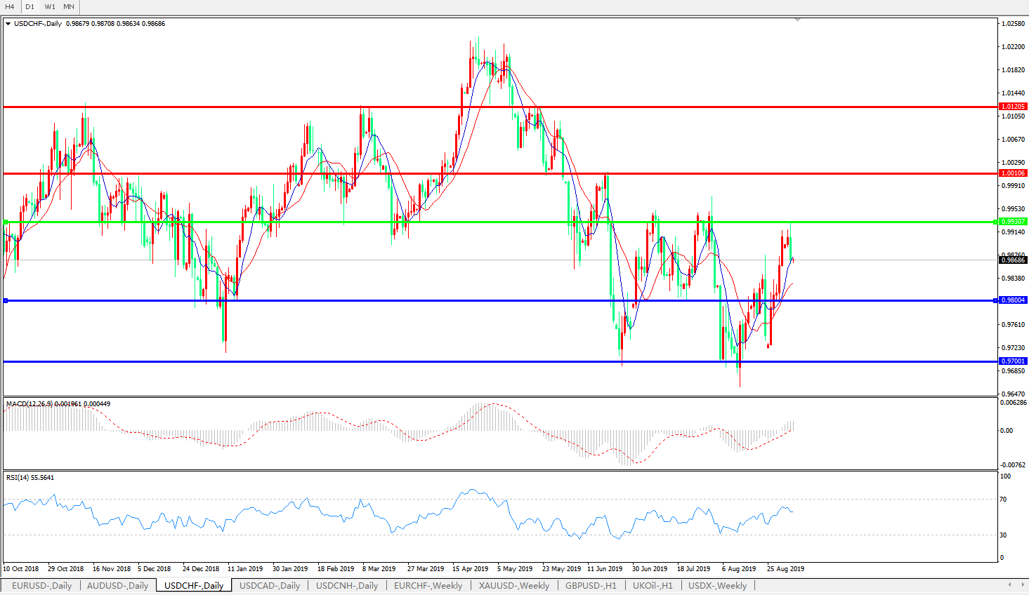 美元瑞郎USDCHF   日线图: