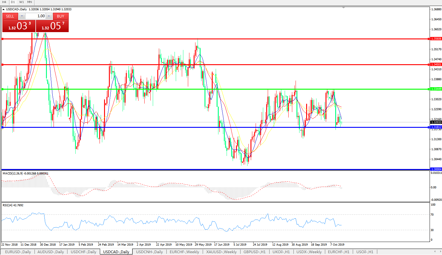 美元兑加元USDCAD    日线