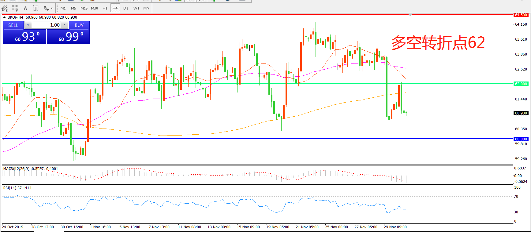 交易策略:在62.00之下看跌,目标60.00 57.50