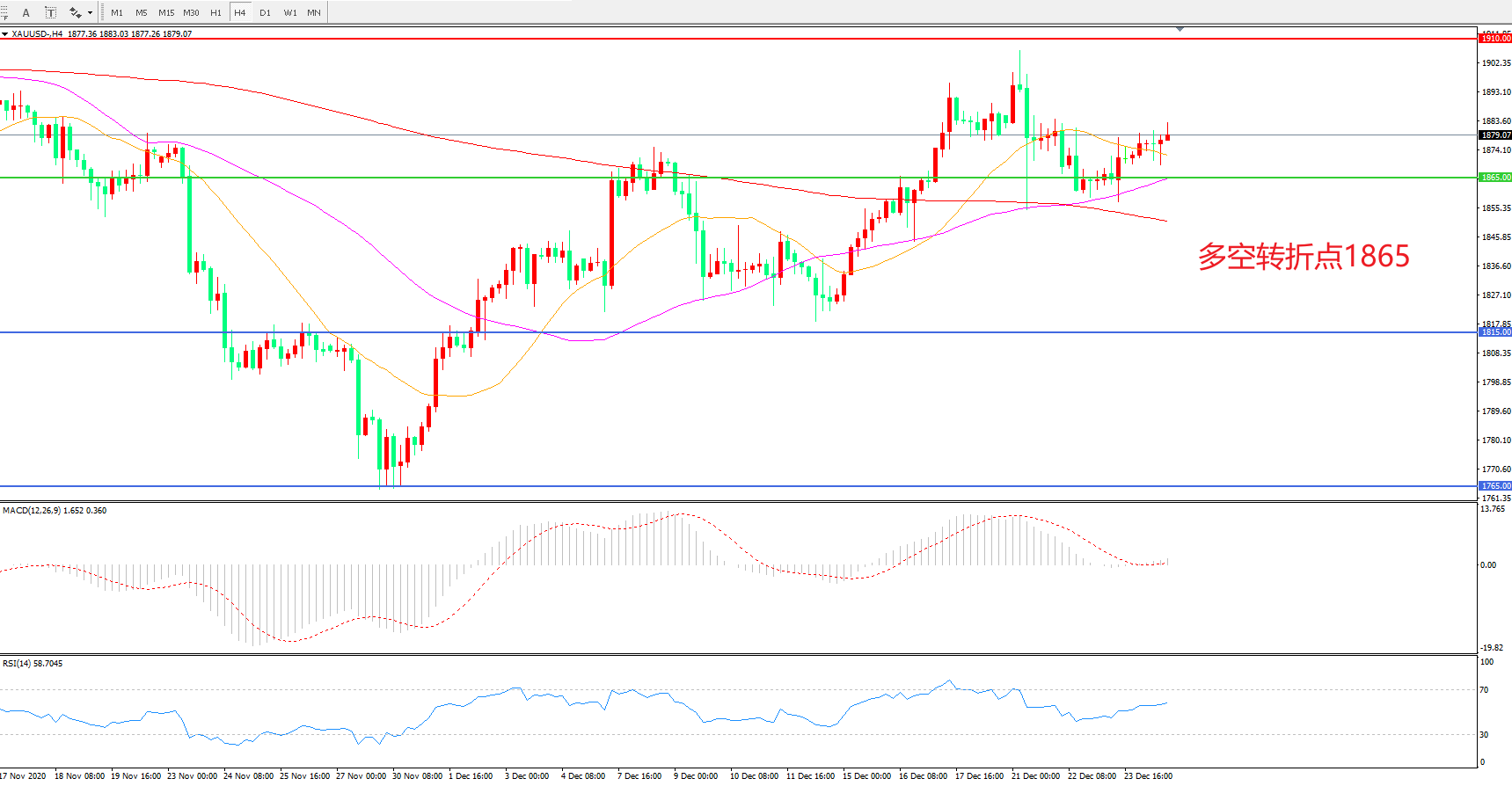 周四(12月24日),英国四年半“离婚”闹剧终告落幕!市场风险情绪有所回升,但美国经济数据的表现疲软,令财政刺激法案推出的迫切感大幅攀升,现货黄金小幅回升,收报1879.07美元/盎司。今日,市场将因圣诞节假期休市一天。