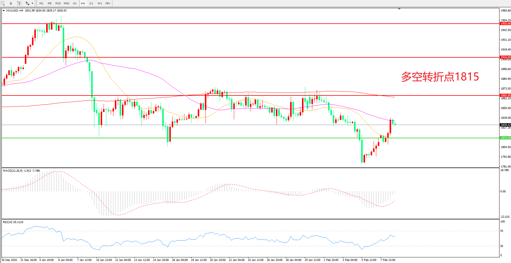 交易策略:在1815.00之下看涨,目标1865.00    1910.00
