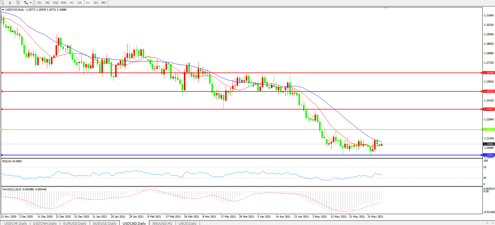 技术面简析:日线图均线呈有序空头排列,汇价弱势整理,MACD运行于0轴下方但量能开始缩量,RSI低位上行,预计短期汇价大概率将开始反弹修正。