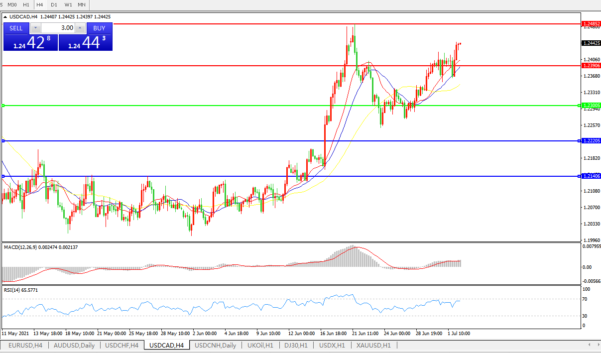 技术面简析:4小时图均线有发散上行迹象,汇价放量上行,MACD运行于0轴上且量能微放量,RSI偏强,预计短期汇价大概率将进一步上行。