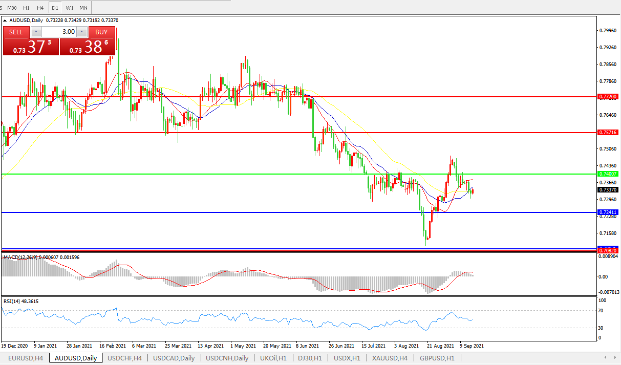 交易策略:0.7400下方看跌,目标0.7240、0.7080
