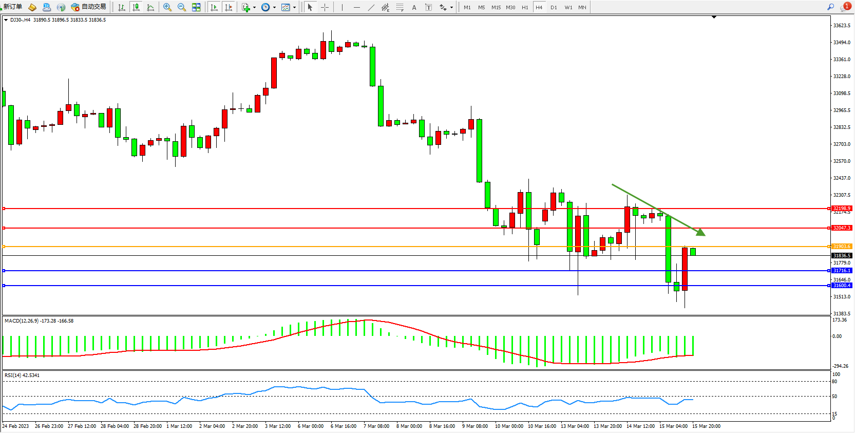 道琼斯指数3月15日(周三)收盘下跌279.18点,跌幅0.87%,报31876.22点;美国2月份零售额在上月飙升后出现下滑,这表明消费者支出虽然保持了增长,但仍受到高通胀的挑战。上个月,在13个零售品类中,有9个品类零售销售下降,其中家具和餐饮行业降幅最大。