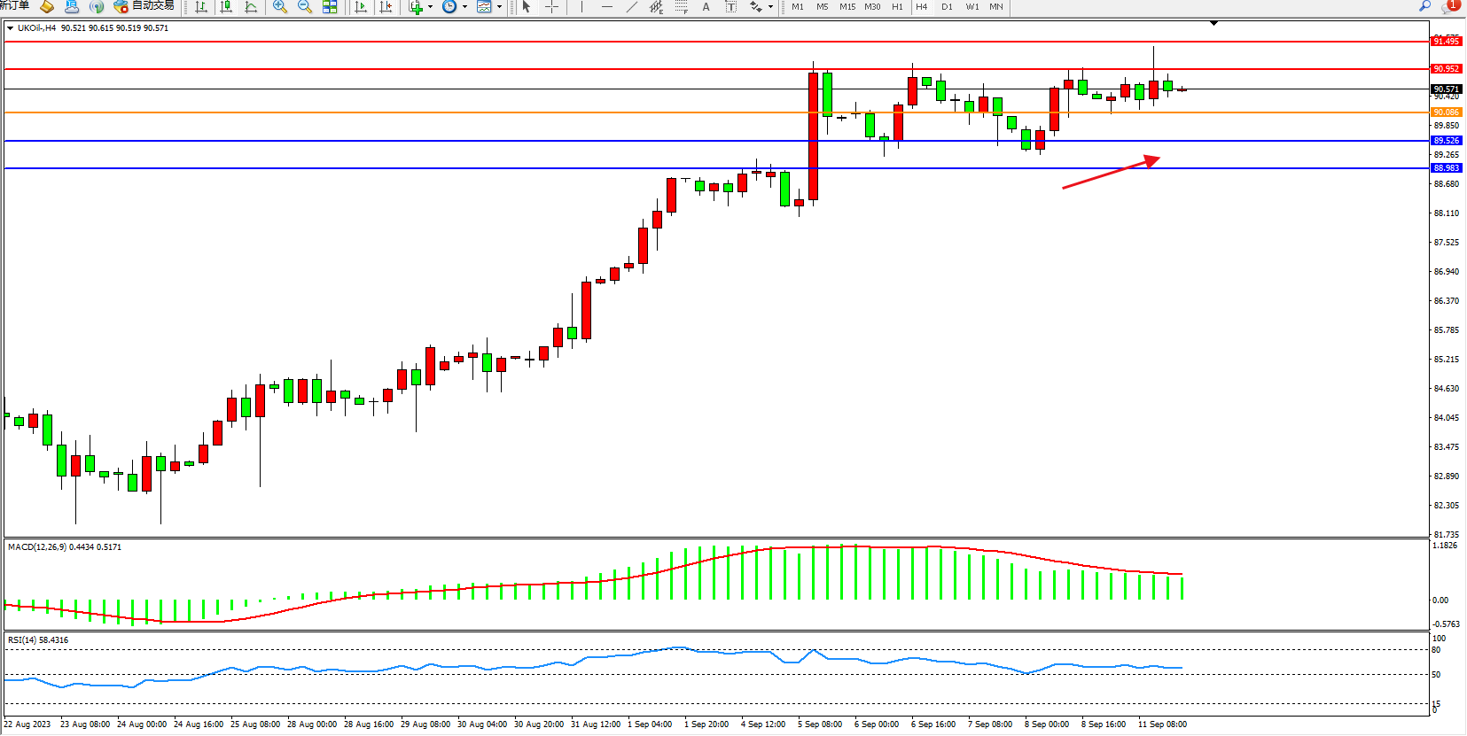 布油UKOil——4小时K线图显示: